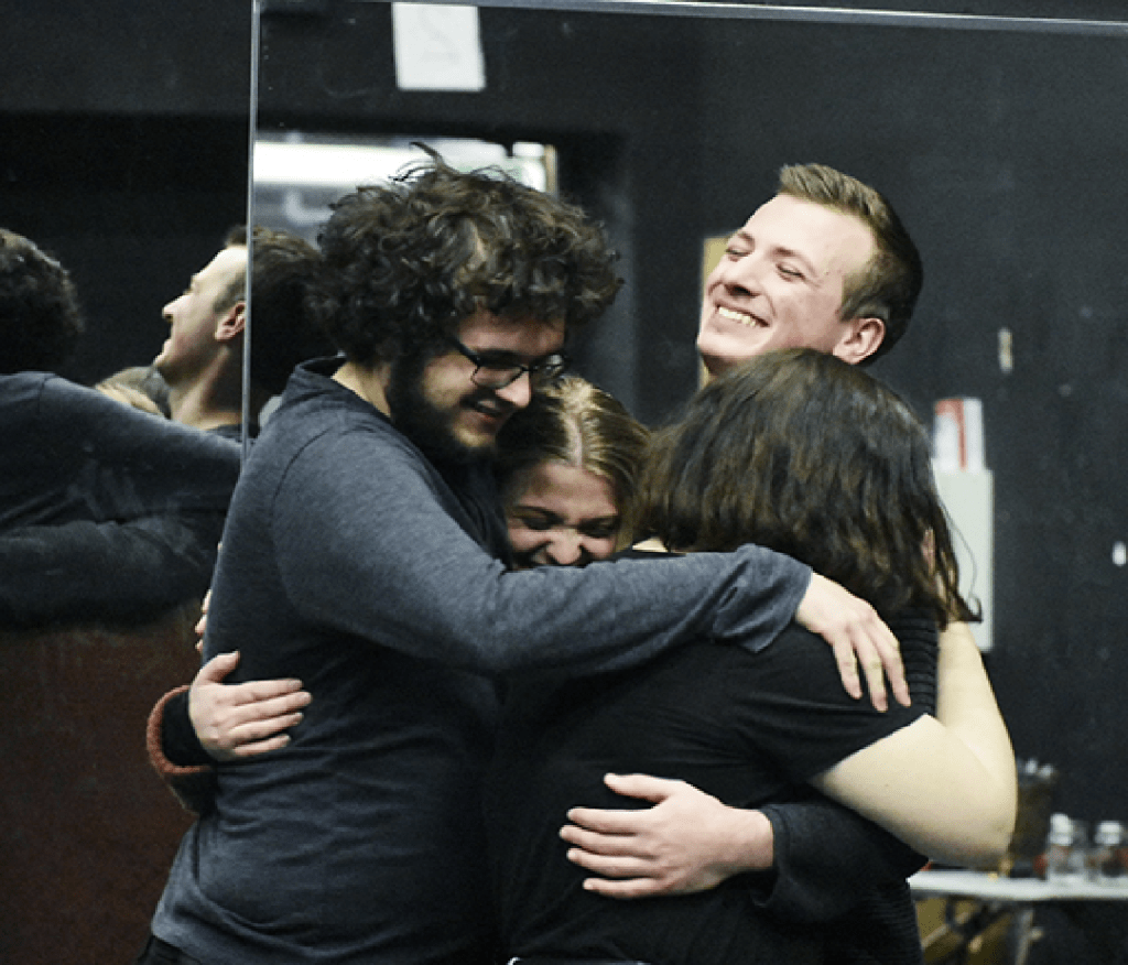 John VanWeezel, who plays one of the locals, says this may be the darkest of all the characters he has played in his time at Aquinas. I only watched a rehearsal of the second act, and I agree. The escalation of crisis is almost material when VanWeezel’s character, Owen, takes the final step in its development. The other locals are played by Breanne Blackwell, Hunter Denkema, Nejla Mujanovic, and Sam Verburg, all of whom bring a lovely light touch to their characters, making for an enjoyable show in spite of the fact that the play’s substance is ultimately dark—they make sure the show will be a good time.