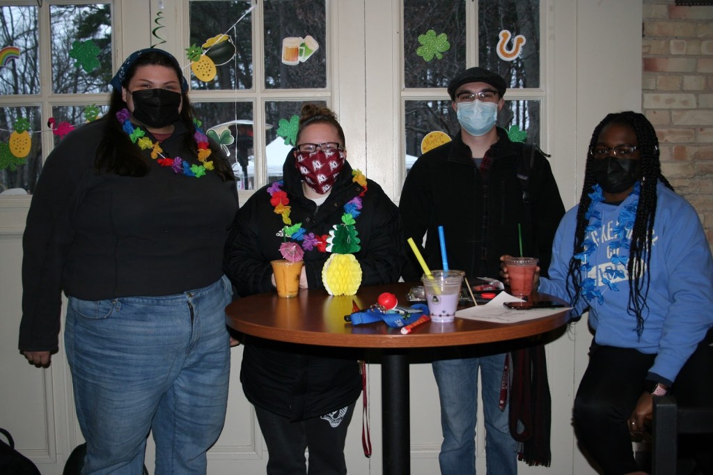 The absence of spring break, along with Zoom fatigue, has taken a toll on students this year. So the Aquinas College Programming Board took it upon themselves to create a Hawaiian themed party inside and outside of the Moose. There were over a hundred participants filtering in and out to get fun Hawaiian-themed food and drinks. While the sky was gloomy, and the chill in the air had returned, the vibrant Hawaiian shirts, leis, and decorations brightened up the front of the Cook Carriage House.