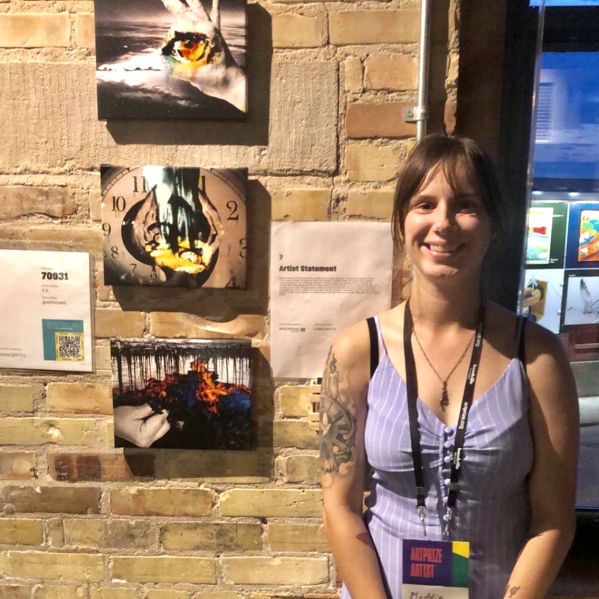 This is her first entry to Art Prize, a feat that was “somewhat easy, yet stressful.” The process includes creating a profile and then reaching out to different venues to see if they were willing to display the piece. For Dryps, she connected with the B.O.B.. Her artwork is being showcased on the second floor, to the right along with many other pieces of artwork in a gallery style.