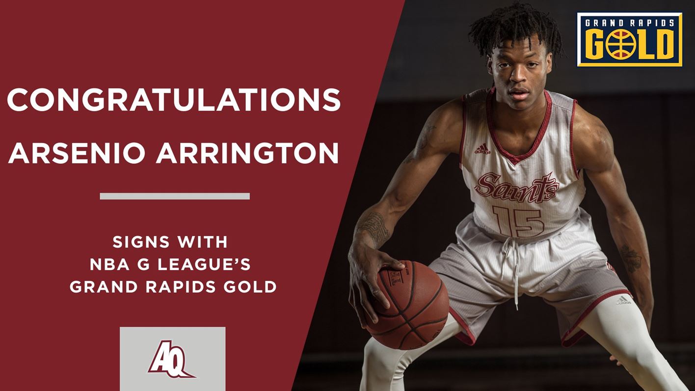 The Aquinas Men’s Basketball program has a lot to be proud of, as former NAIA All-American, Arsenio Arrington has agreed to terms on a contract with the G League’s Grand Rapids Gold, affiliate of the Denver Nuggets. Arrington was able to suit up for a pair of home games at the Deltaplex Arena this past weekend on Friday (Jan. 7), and Saturday (Jan. 8).