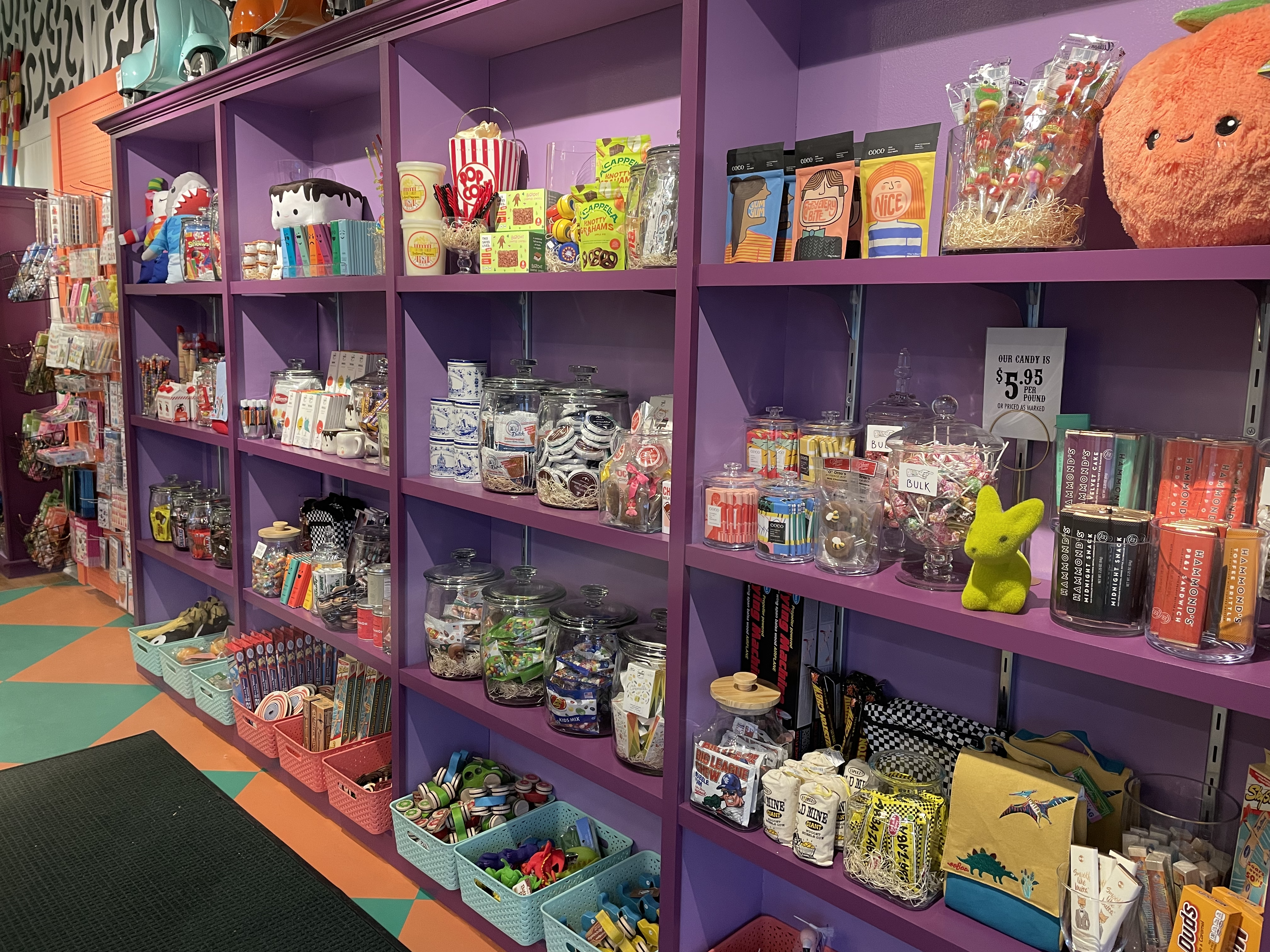 Beyond the overwhelming amount of candy, Sticky Fingers offers fun, cute knick knacks. They have stickers, fidget toys, erasers, cups, and pillows. The store has a large wall of stationary: including gift bags, pens, and fun wrapping paper.