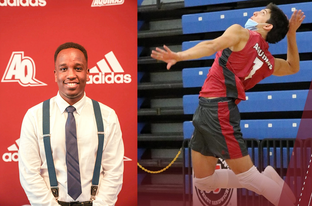 Julian Armendano, a transfer student who is originally from Argentina, plays on the Aquinas men’s volleyball team.