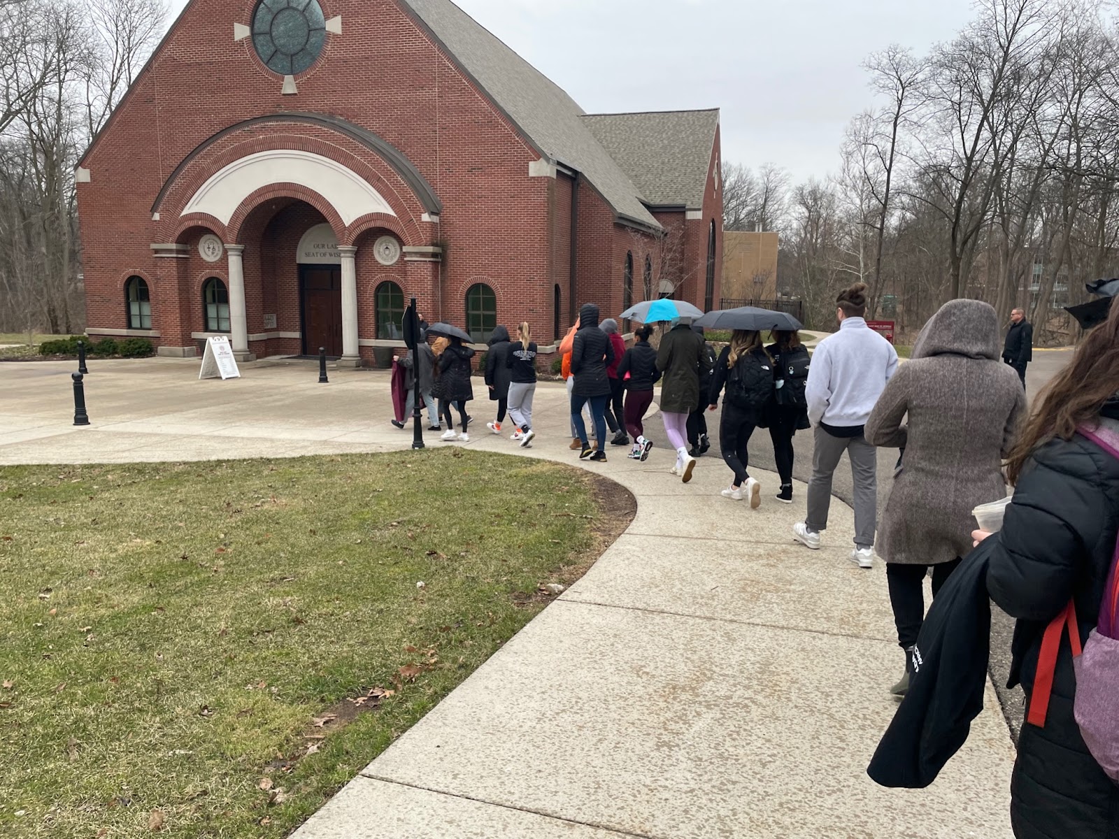 On March 30, members of the Aquinas community including students, staff and faculty gathered to march in solidarity with missing and murdered indigenous women throughout the United States. These women are underrepresented and overlooked in the media, even though indigenous women are at a tenfold risk of experiencing domestic violence as well as murder in comparison to their white counterparts.