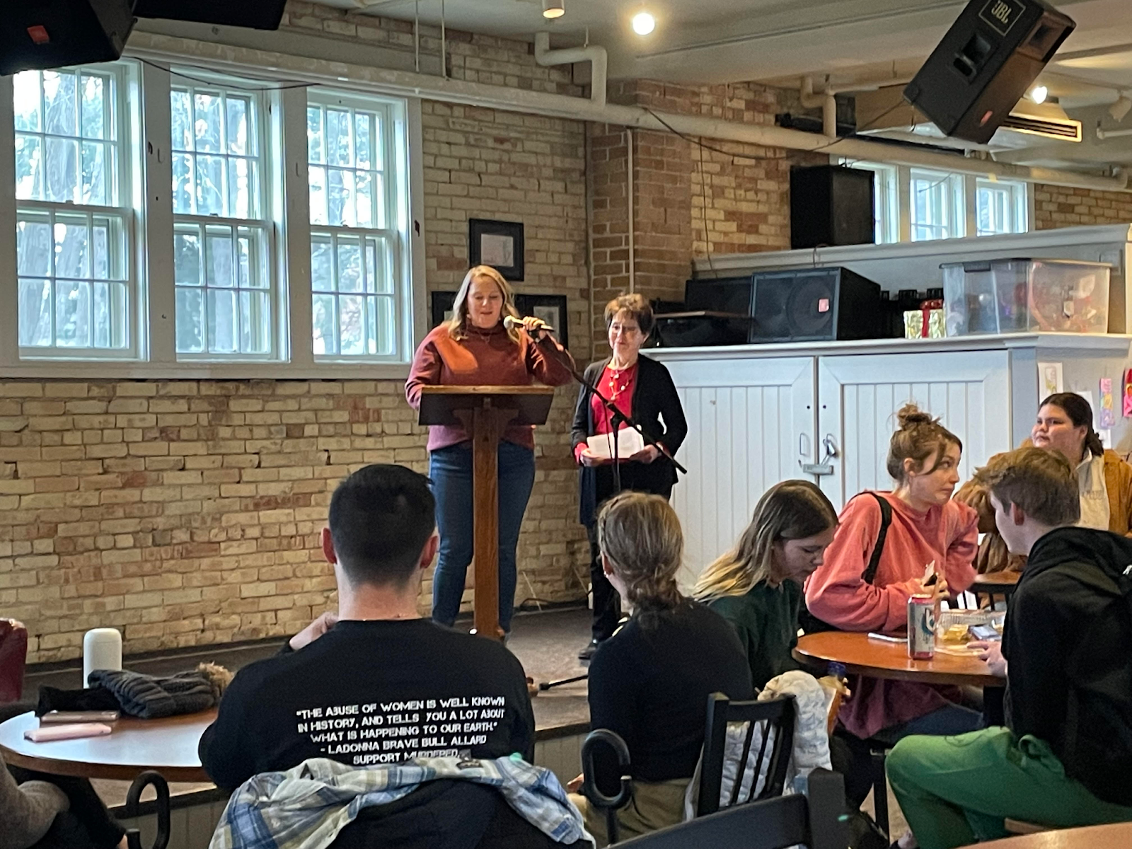 The march began at the St. Thomas Aquinas statue and was silently conducted in remembrance of those who have been missing and murdered. It ended at the Cook Carriage House’s Moose Cafe, where Dr. Linda Keway and Mallory Miller, the director of the Center for Diversity, Inclusion and Equity, spoke on the importance of protecting and achieving justice for violence against indigenous women.