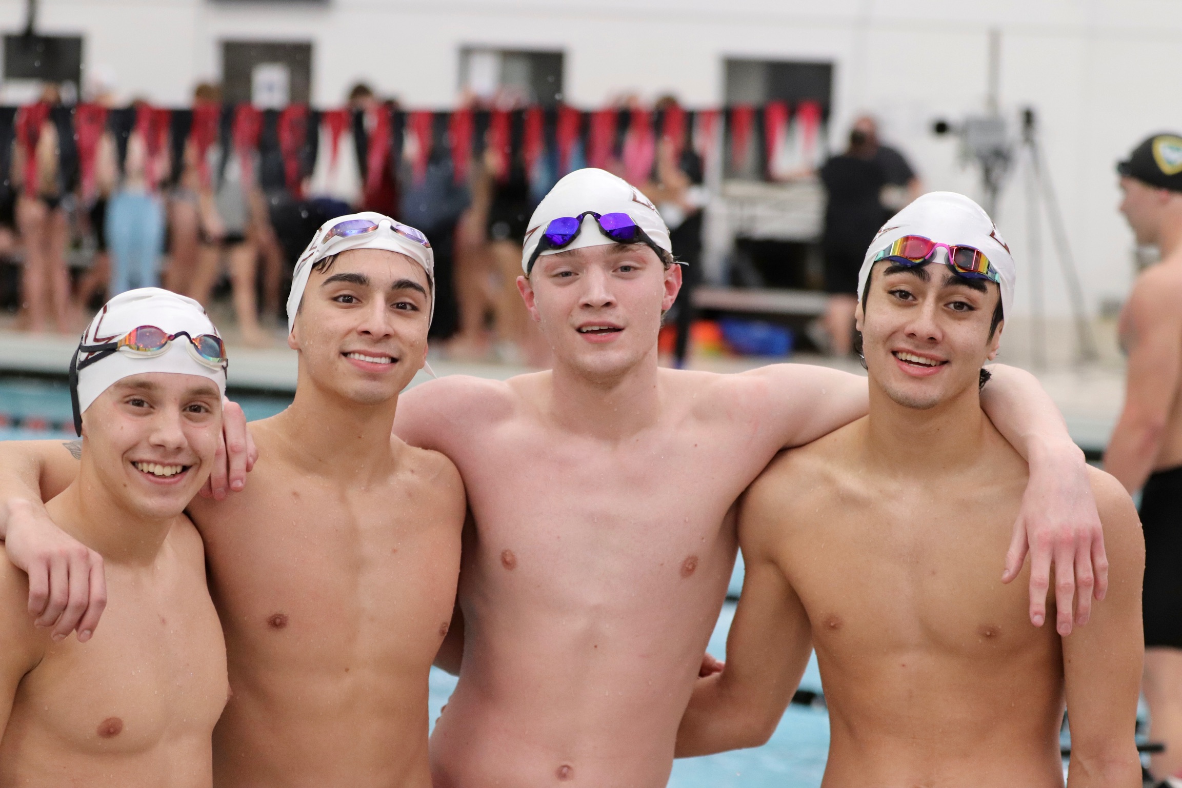 Back on the Men’s side, the A 200 Medley Relay of Titus Smith, Cesar Robles, Evan Hurtado and Matt Dumbsky beat the school record with a time of 1:35.54, coming in 7th overall. Immediately behind, the B medley of Ian Clapp, Luke Martin, Collin Neely and Collin Alward finished in 8th. Both teams out- touched their two rival competitors, Bethel University Indiana and Olivet Nazarene’s, A relay teams.