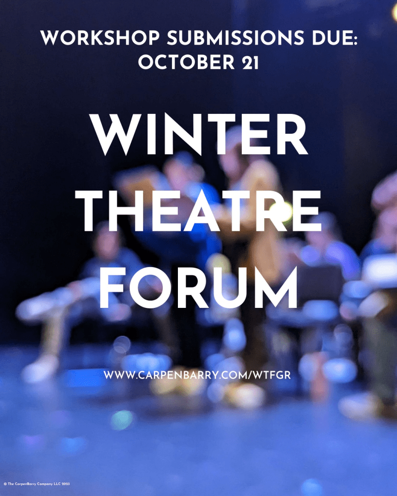 The forum is described on the Carpenbarry website as, “A four-day conference that brings together the vibrant theatre community of Grand Rapids to share their inspiration, knowledge, and create new ideas. We believe in the power of theatre to transform lives and communities, and we’re here to celebrate that belief and ensure the future of theatre in Grand Rapids.”