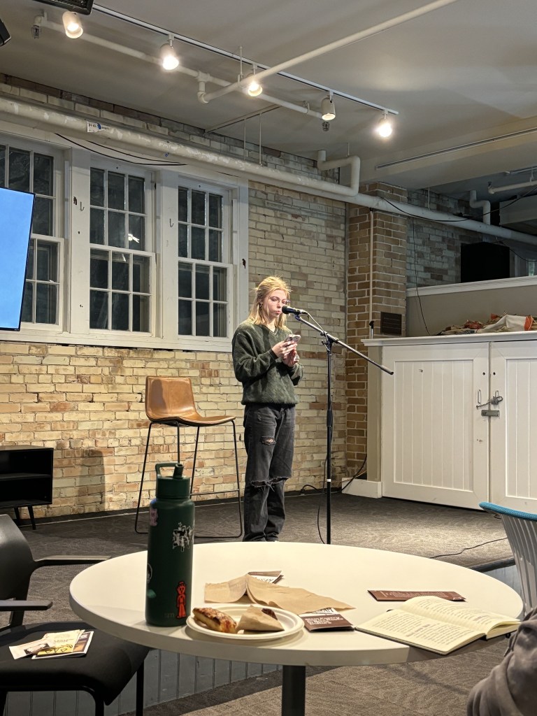 Sophomore Taylor Owens, who read several poems at the Slam, commented, “The Poetry Slam was something entirely new for me. I’ve never participated in something like it before, and to be honest, I was nervous. But the community that was there was so supportive, so welcoming. I had the opportunity to listen to people’s stories and emotions come out through their writing, and it’s something I think everyone should experience at least once. I had a ton of fun, and I’m so glad I went!”