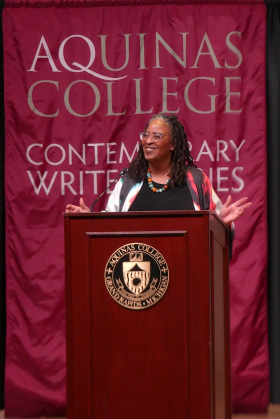 On Thursday, March 21, at 6 p.m., the Contemporary Writers Series (CWS) at Aquinas College hosted its 27th season. Co-sponsored with the Jane Hibbard Idema Women’s and Gender Study Center (JHIWSC), both organizations invited renowned author Camille Dungy to share her work at the Kretschmer Recital Hall in the Arts & Music Center.