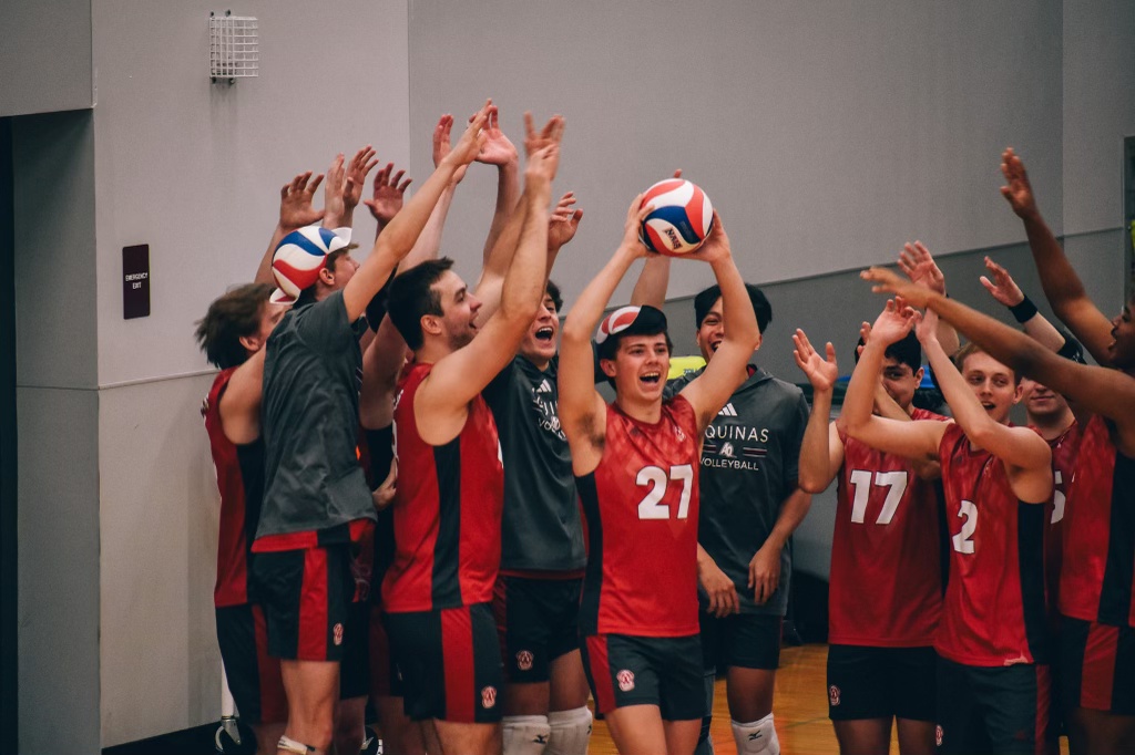 Beginning the 2024 season, the Aquinas Men’s Volleyball team were expecting big outcomes from a team with a heavy underclassmen roster. They went into their first matchup in the season during an exhibition match against Calvin College, a D3 team nearby. This matchup held for an exciting home opener, when starting the game, the team came out wearing a ‘Broken Crayons Still Color” shirt in support of Mental Health, while also having President Cordoba and a showing of Calvin’s previous president. The first two sets had the crowd biting their nails while they lost both by fewer than 5 points in both. They came back hard in the next three sets to pull off a reverse sweep against Calvin!