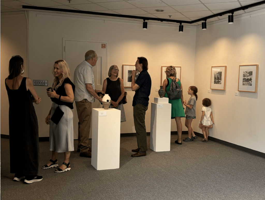 Aquinas community members mingle during Faculty Art Show-Photo Credit: Dana Freeman