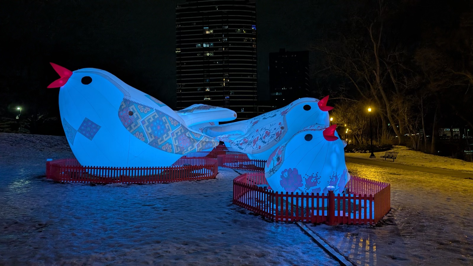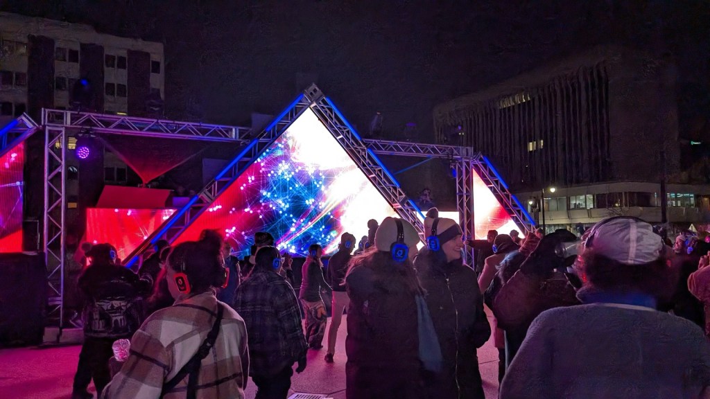 Hundreds braved the cold on Saturday, Jan. 18 to gather for a silent disco in Calder Plaza. Whilst the temperatures were below freezing it did not stop residents dancing and singing along while wearing headsets that played club music whilst the surrounding glowing art installations illuminated the plaza.