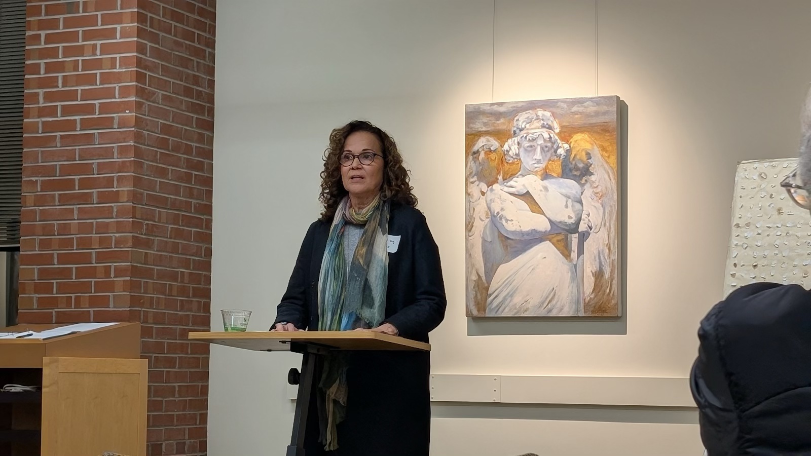 At the reception, she discussed the work on display, which includes pieces from a range of series, some of which are landscapes, others more figure based.