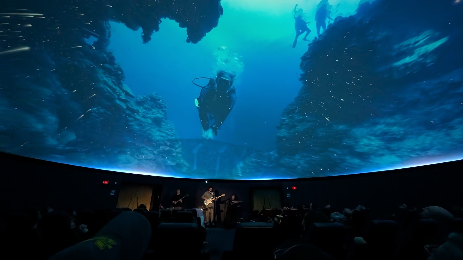 Odd Space playing under the planetariums dome – Photo by Joel Grimsley
