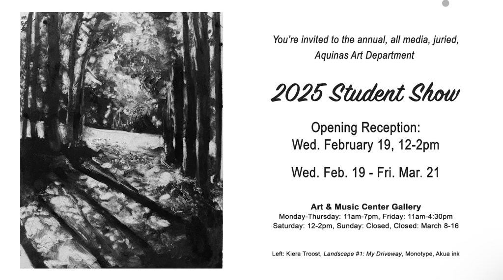 The student art show offers a great experience for both viewers and artists. “It’s really great to see each other’s work, because you’re able to come and see how great our students are,” Freeman said. “You can come see how talented and diverse the students at Aquinas college are.”