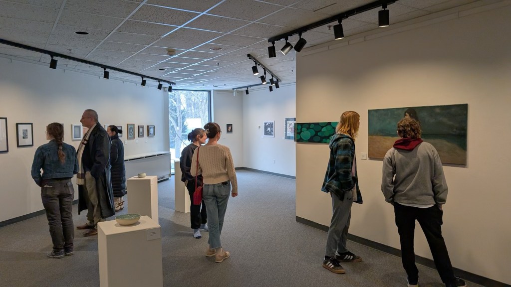 Students, faculty and the public gathered at the Arts Music Center on Wed. Feb. 19 to attend the annual Student Art Show’s reception as the AMC Gallery hosts student artwork for the coming 4 weeks.