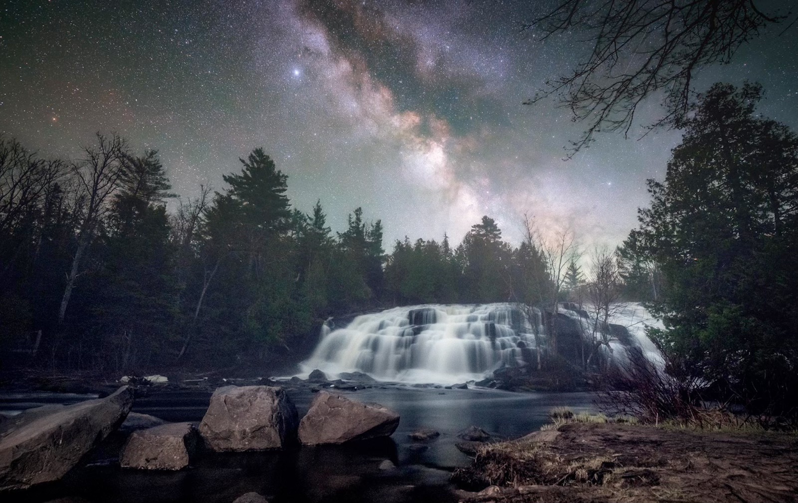 Bond Falls under the breadth of the Milky Way Galaxy – photo by Marybeth Kiczenski
