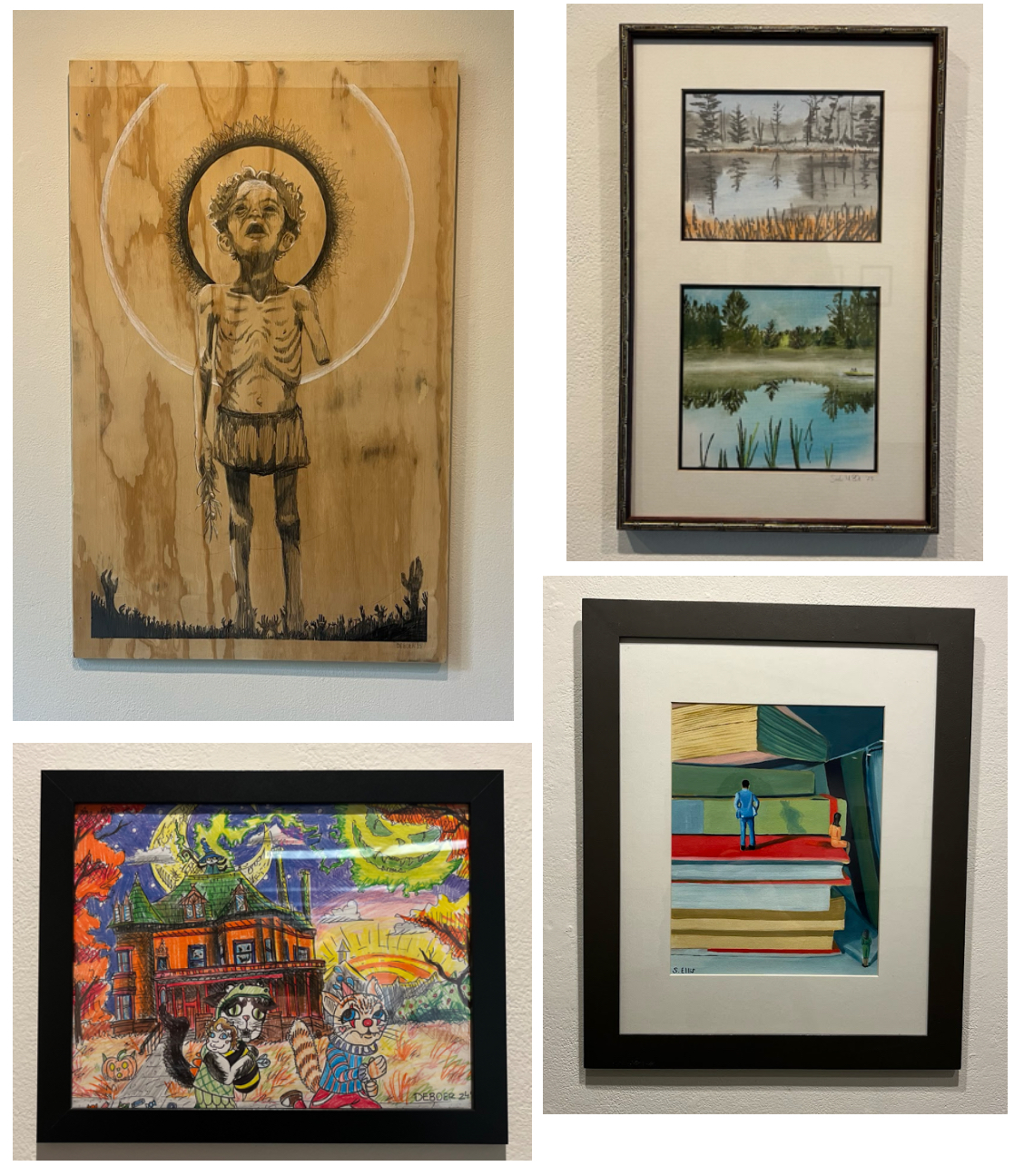 Kelli Herm, one of Ellis’ classmates, came to see the gallery. “I really liked the one with the books,” Herm said. “Mostly because I’m a librarian and I really liked the message, but I also enjoyed the nature pieces as well.”