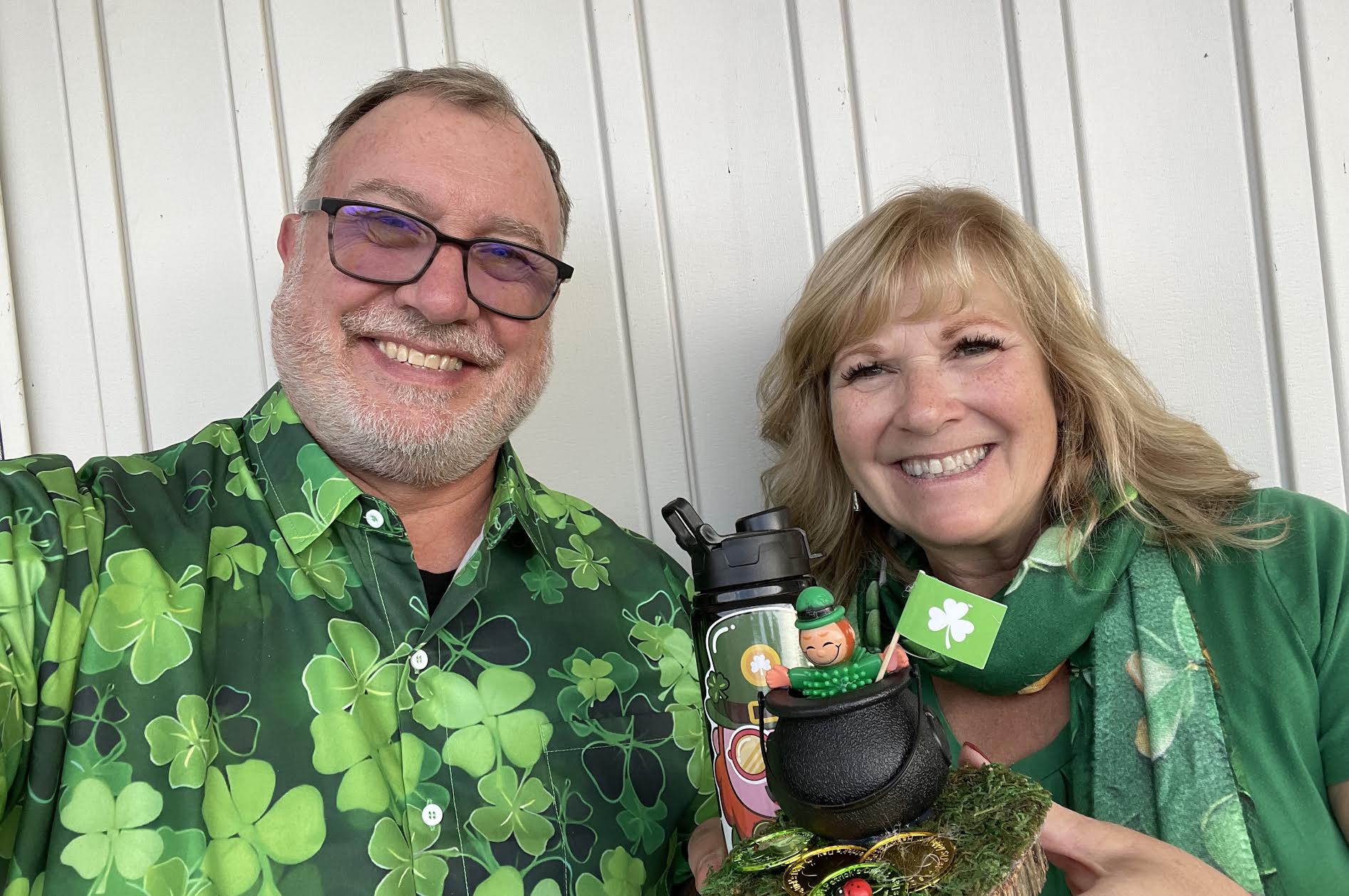 Dr. Penny Avery and her husband, Todd Avery, dress festively for Irish bingo – photo by Todd Avery