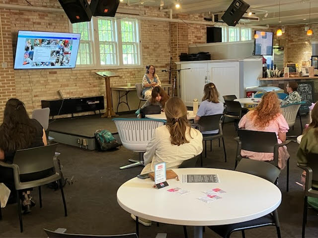 The attendees of HerStory listening to Forsyth speak – Photo by Amy Dunham Strand, Ph.D