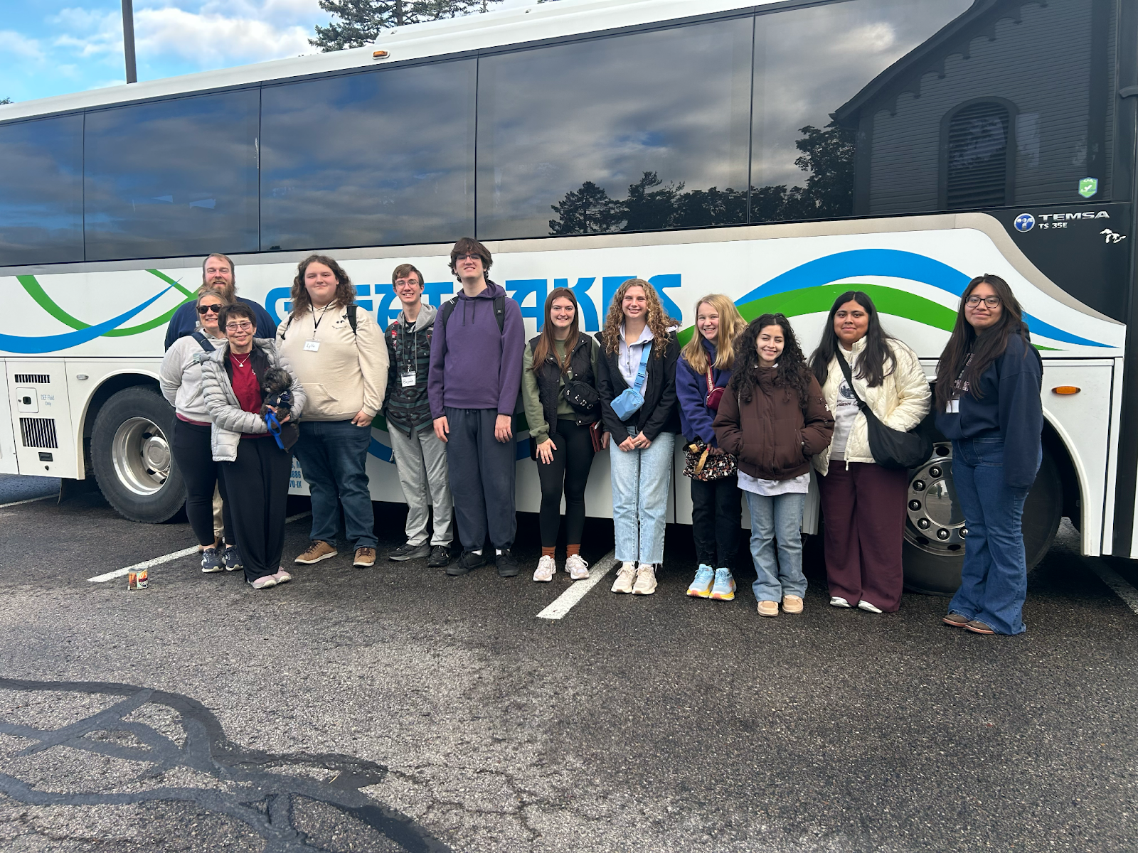 Students attending the fall break trip , taking a photo outside of the bus in Harbor Springs – Photo by Brigid Avery