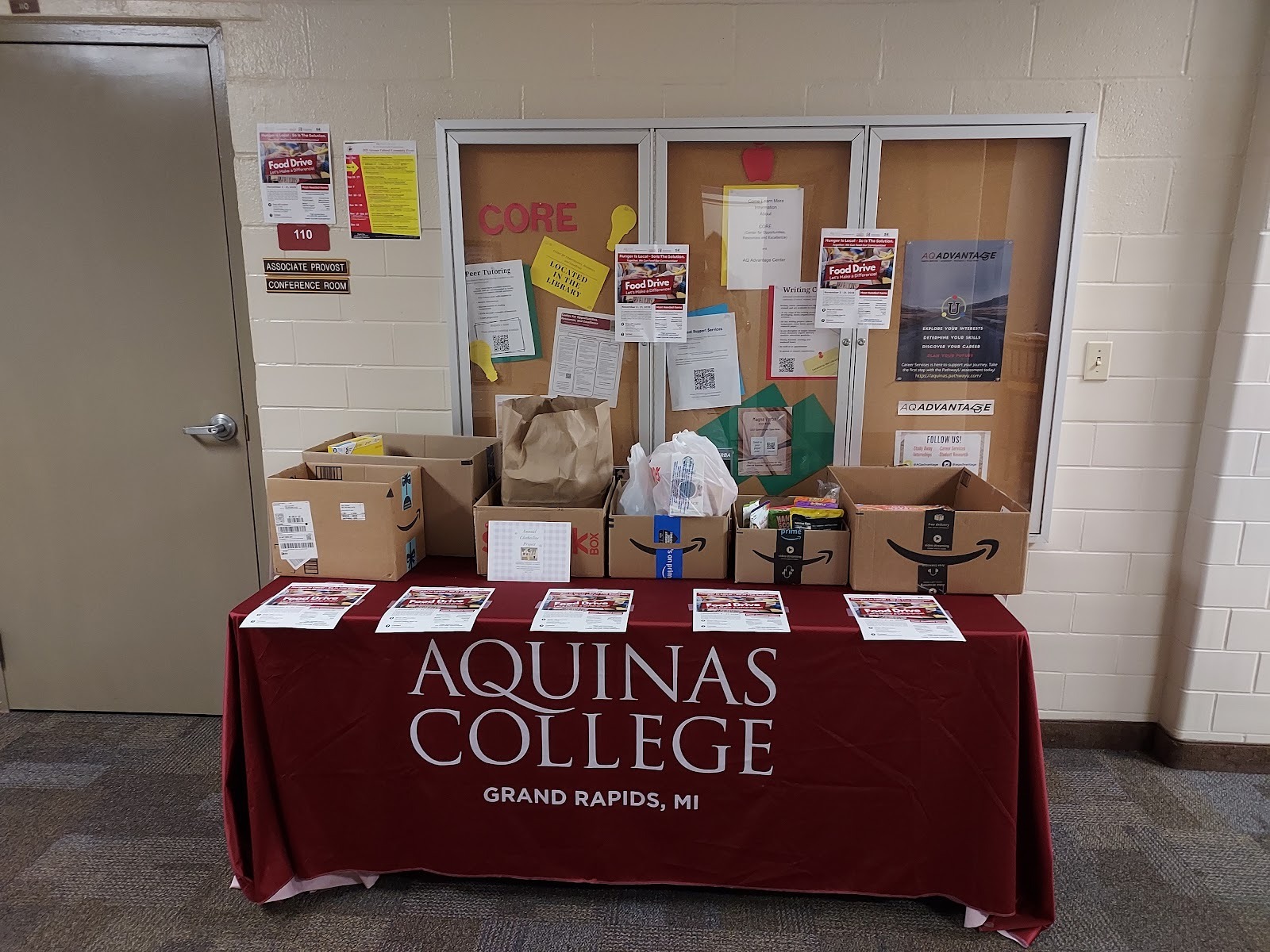 Food drive poster hosted by Aquinas in partnership with Feeding America, Dominican Sisters and Eastown Community Association – Photo by Aquinas SAO