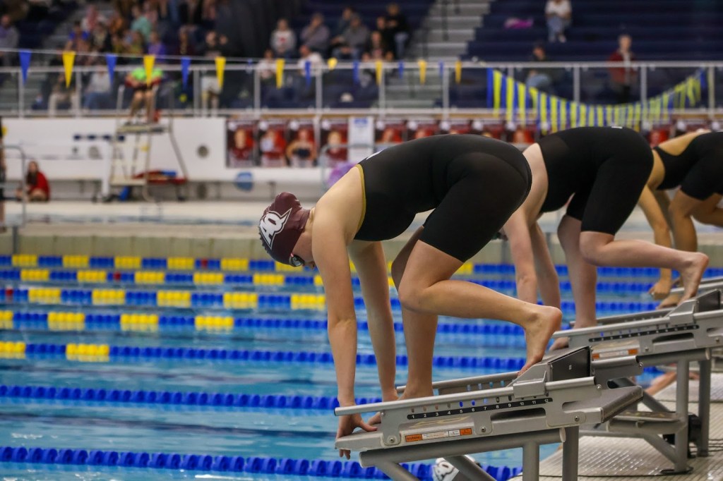 AQ Swimmers get set for a race against Davenport – Photo by Grace Malec