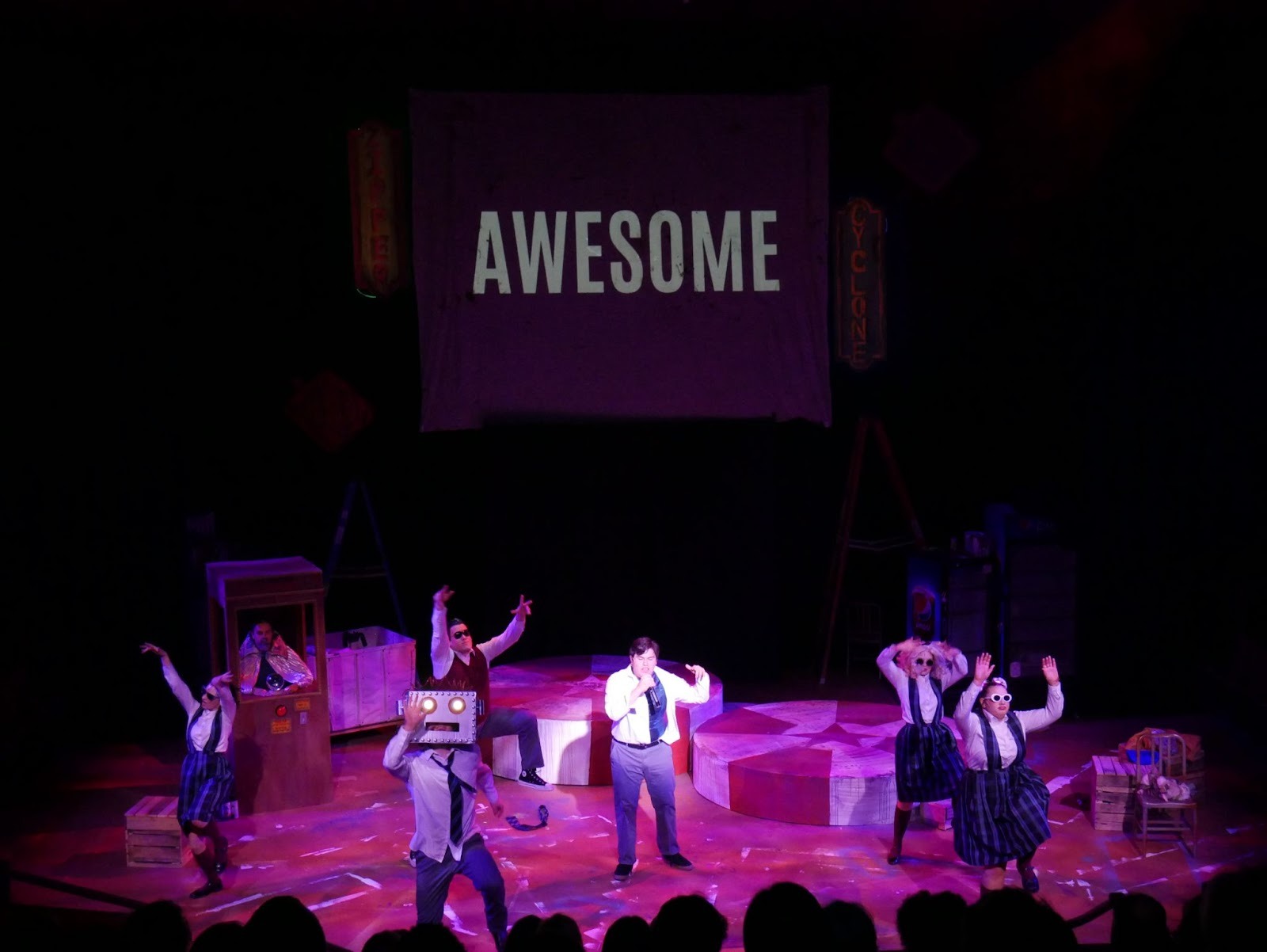 Scene from Ride the Cyclone during Mischa’s rap – Photo by Scott Harman