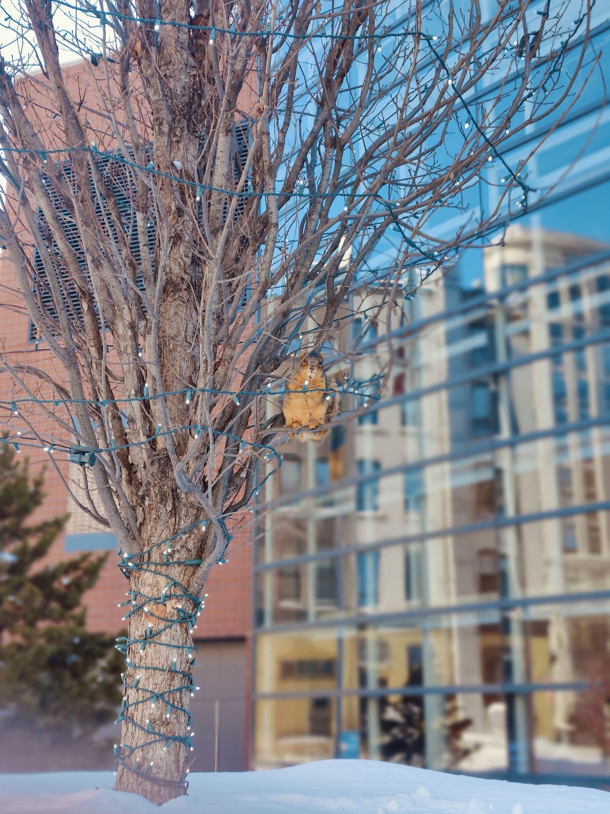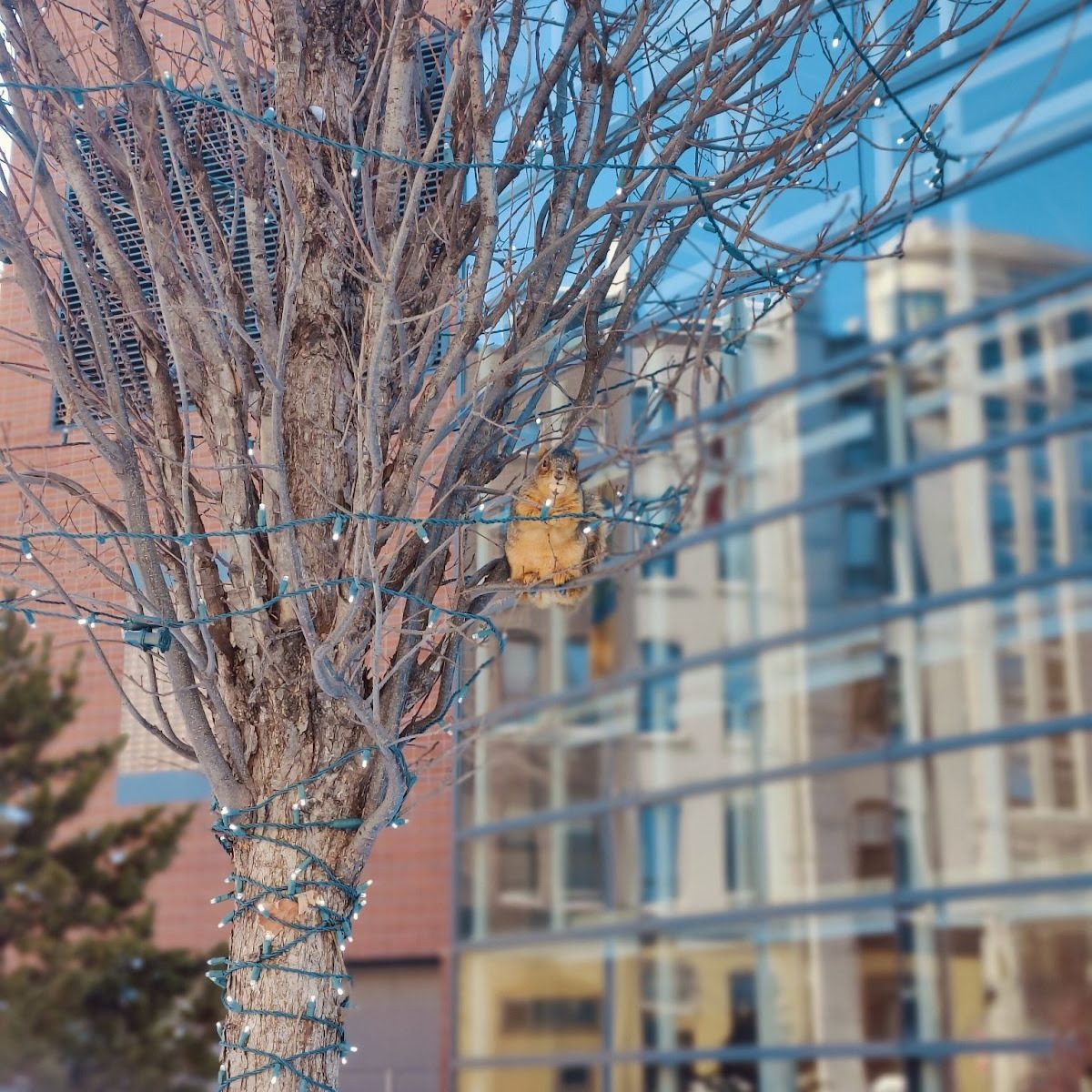 Squirrel “chilling” at Fulton/Van And Arena (EB) bus stop to explore the Rapidian wonderland – Photo by Cristian Zacharias