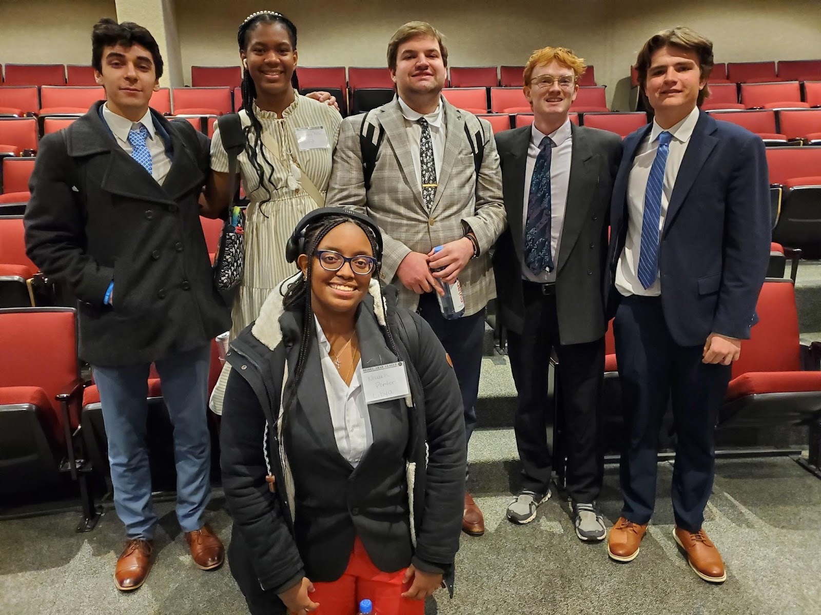 Libya delegates smile for a picture (From left to right: Joe Farage, Crismary Peña, Thomas Bearden, Logan Moncer, Benjamin Holloway, Nevaeh Porter)- Photo by Nevaeh Porter