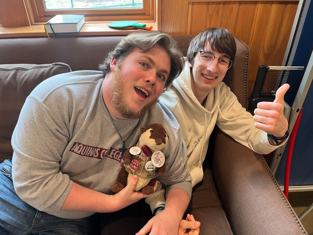 Following small and large groups, Mass was held, followed by lunch. Afterward, junior Logan License spoke about his experience encountering Christ at Aquinas College, and how many of his friends were there for him during difficult times. License noted that authentic community involves being there for another, and recognizing that one may too need help from others in addition to what they give. Following small groups and large groups came the transition into free time.