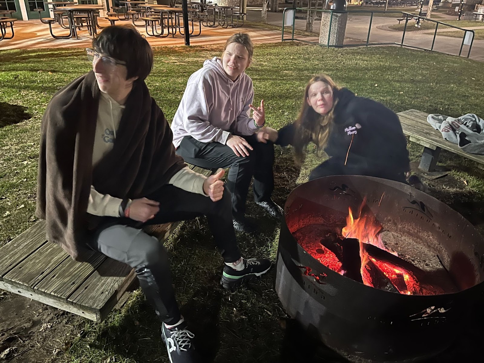 Students enjoying the fire – Photo by John Petty